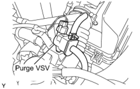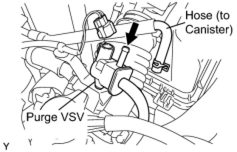 (a) Disconnect the hose (connected to the intake manifold) from the purge VSV.