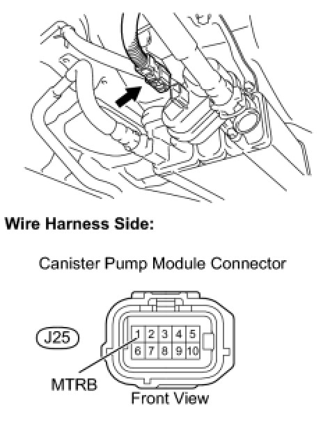 (d) Check the resistance between MPMP terminal of the ECM connector and MTRB terminal of the canister pump module connector.