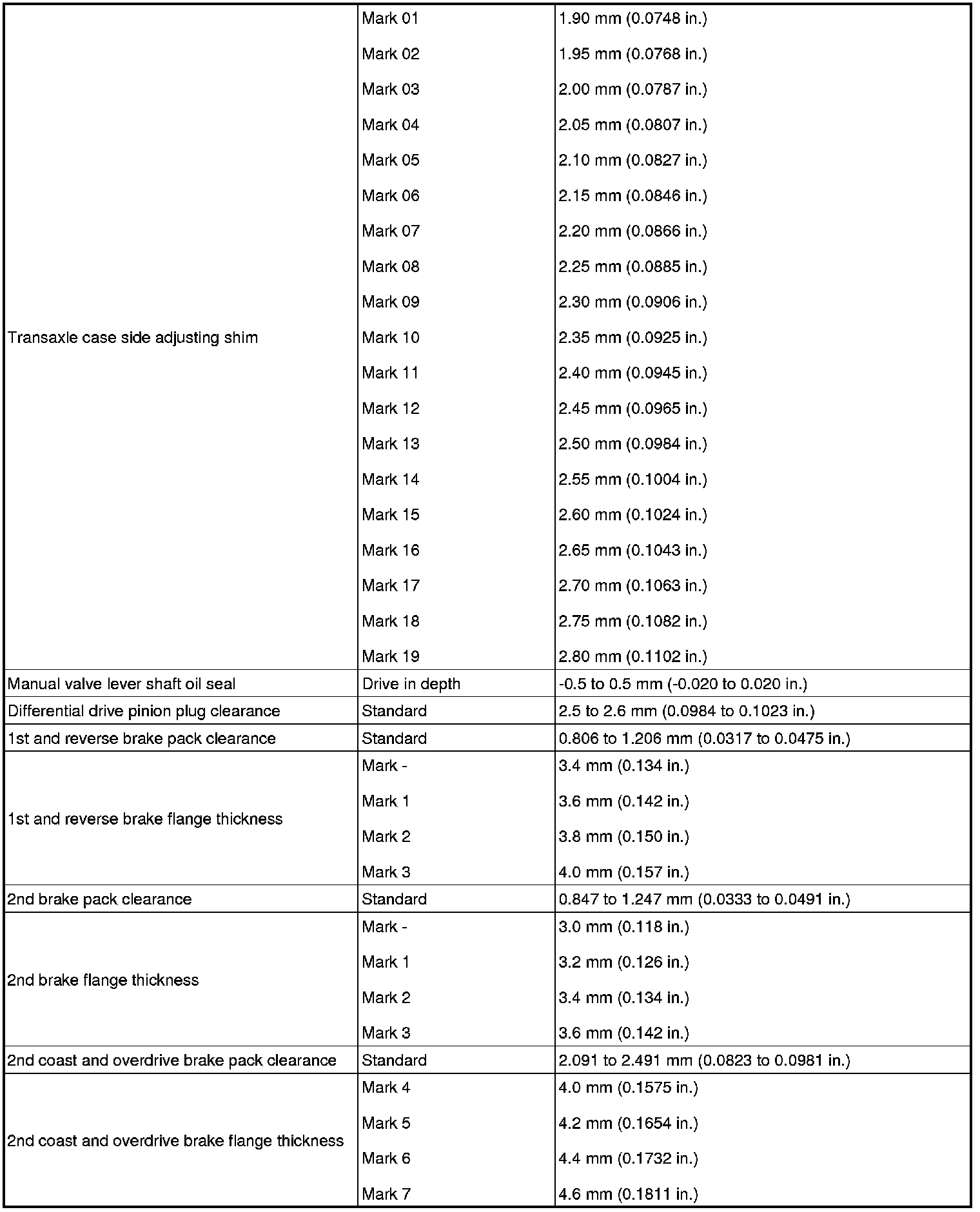SERVICE SPECIFICATIONS: U340E AUTOMATIC TRANSAXLE: SERVICE DATA