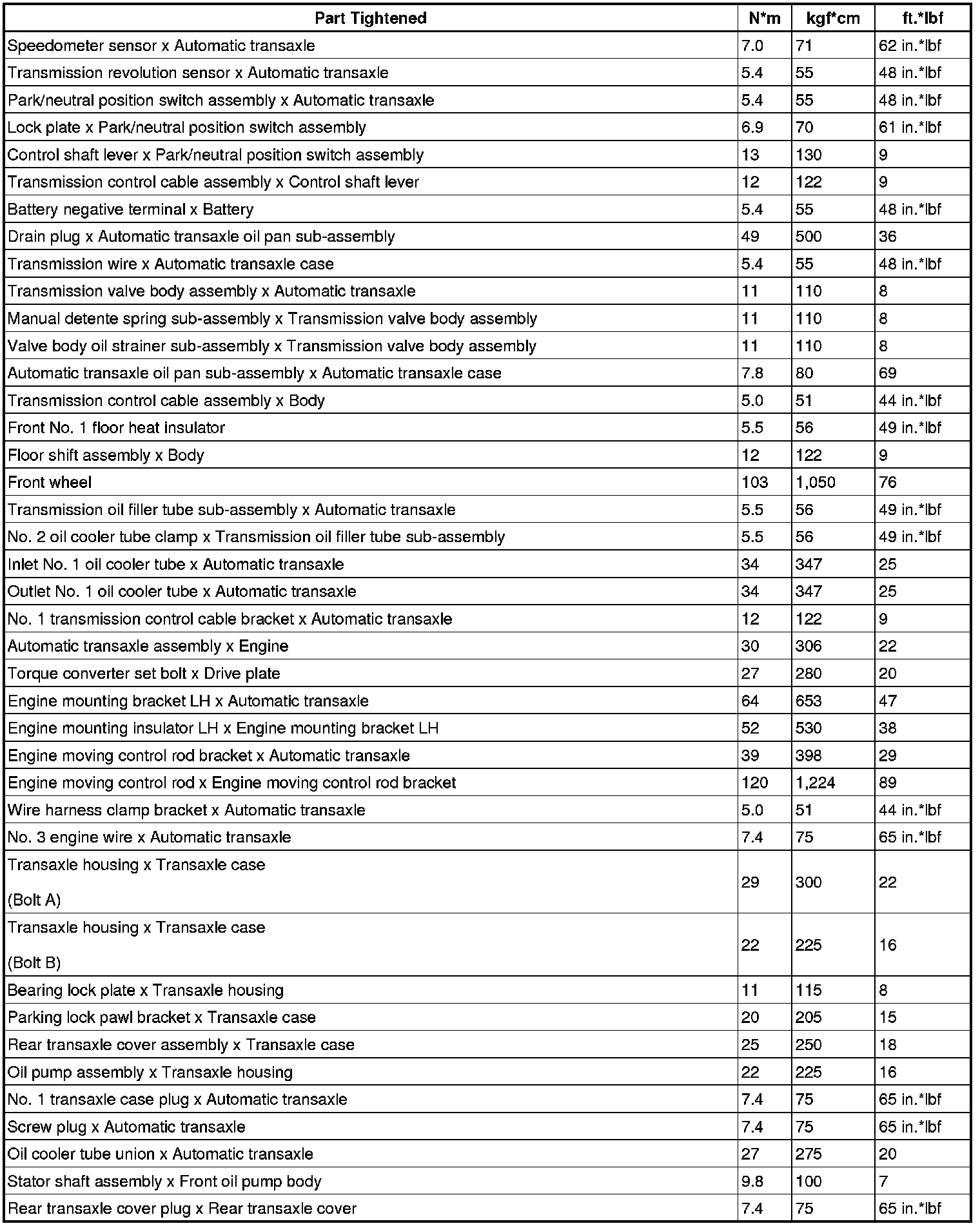 SERVICE SPECIFICATIONS: U340E AUTOMATIC TRANSAXLE: TORQUE SPECIFICATIONS