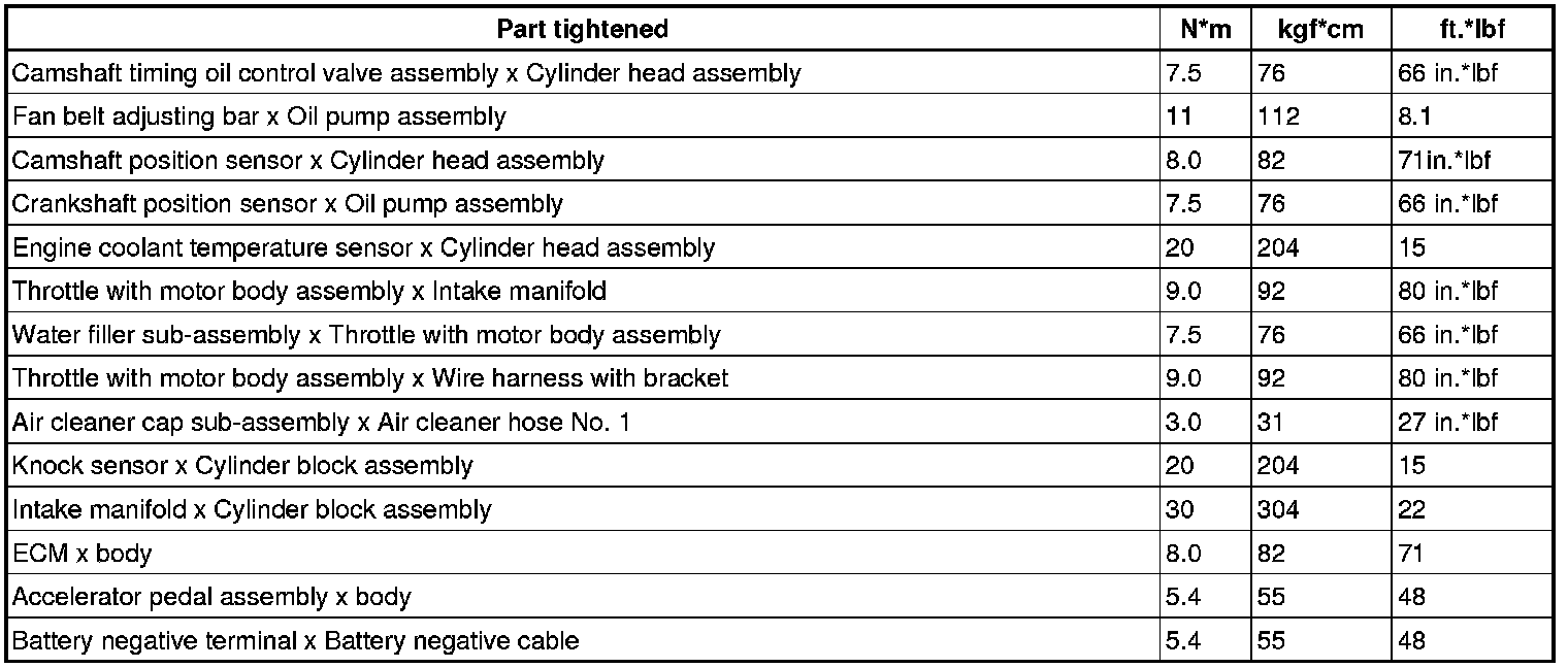 SERVICE SPECIFICATIONS: 1NZ-FE ENGINE CONTROL SYSTEM: TORQUE SPECIFICATIONS
