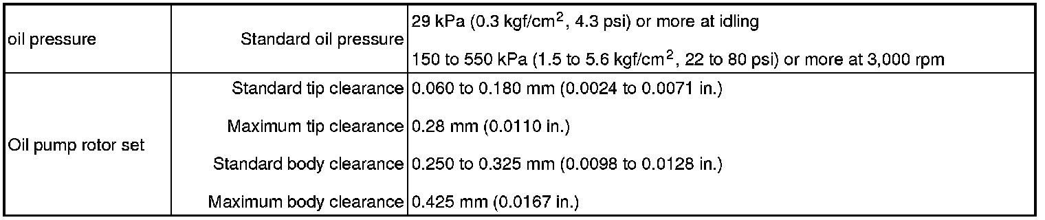 SERVICE SPECIFICATIONS: 1NZ-FE LUBRICATION: SERVICE DATA