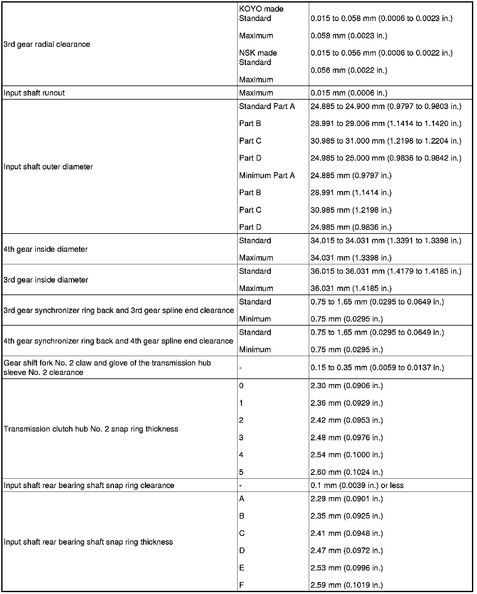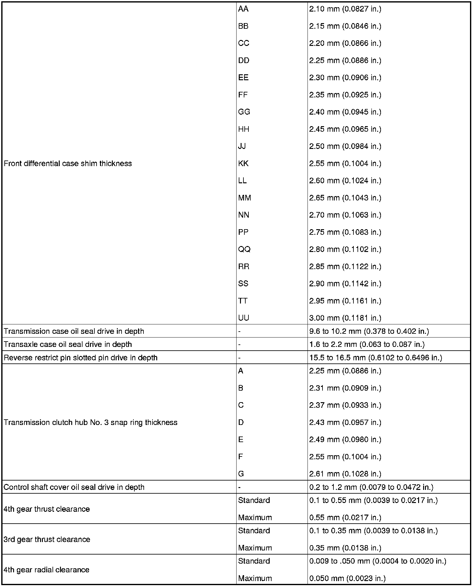 SERVICE SPECIFICATIONS: C50 MANUAL TRANSAXLE: SERVICE DATA