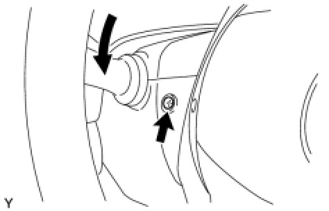 (b) Turn the steering wheel to the left and install the screw indicated in the illustration.
