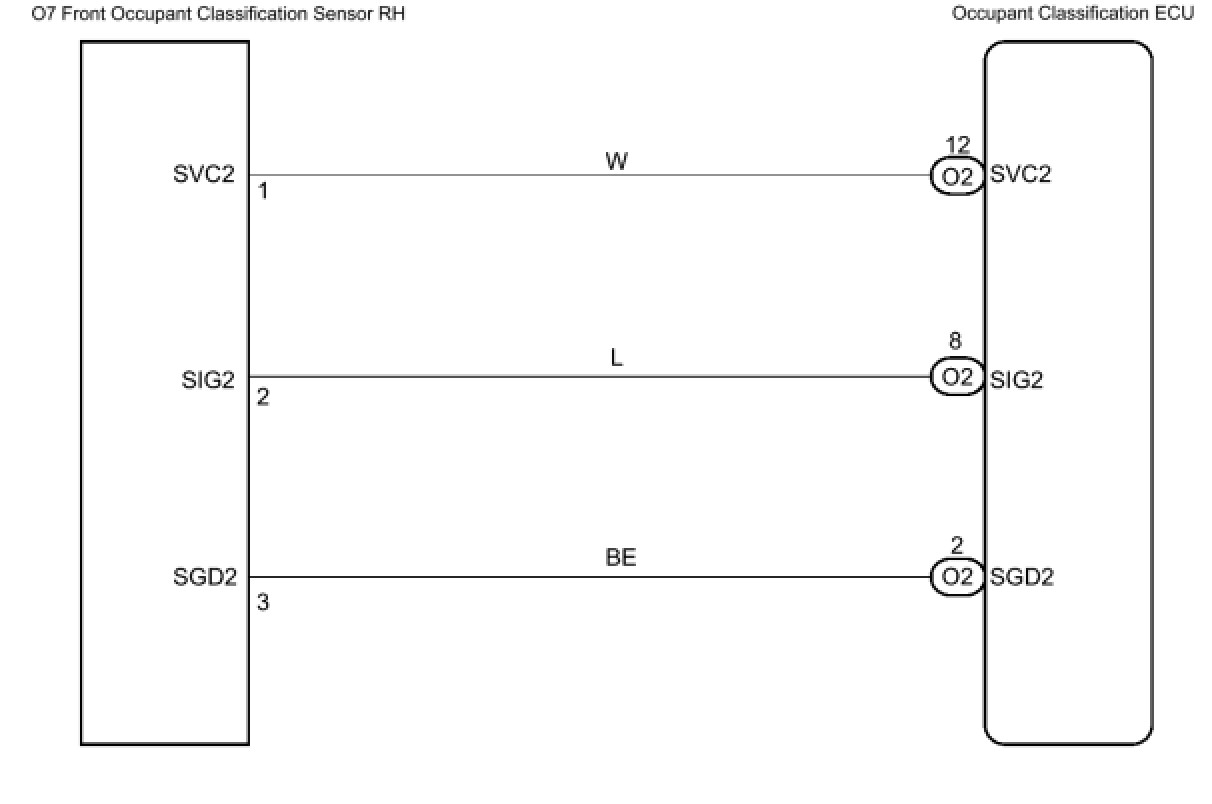 The front occupant classification sensor RH circuit consists of the occupant classification ECU and the front occupant classification sensor RH.