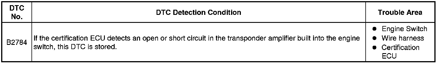 DOOR LOCK: SMART KEY SYSTEM: B2784: Antenna Coil Open / Short
