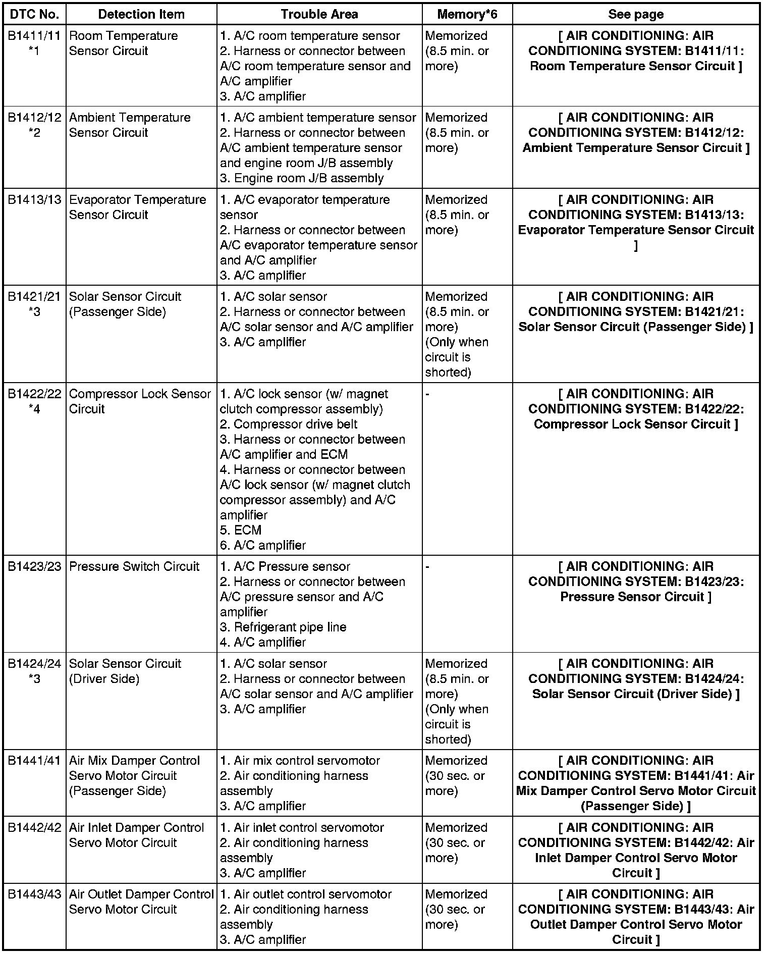 * *1: If the cabin temperature is approx. -18.6°C (-1.48°F) or lower, DTC B1411/11 may be output even though the system is normal.
