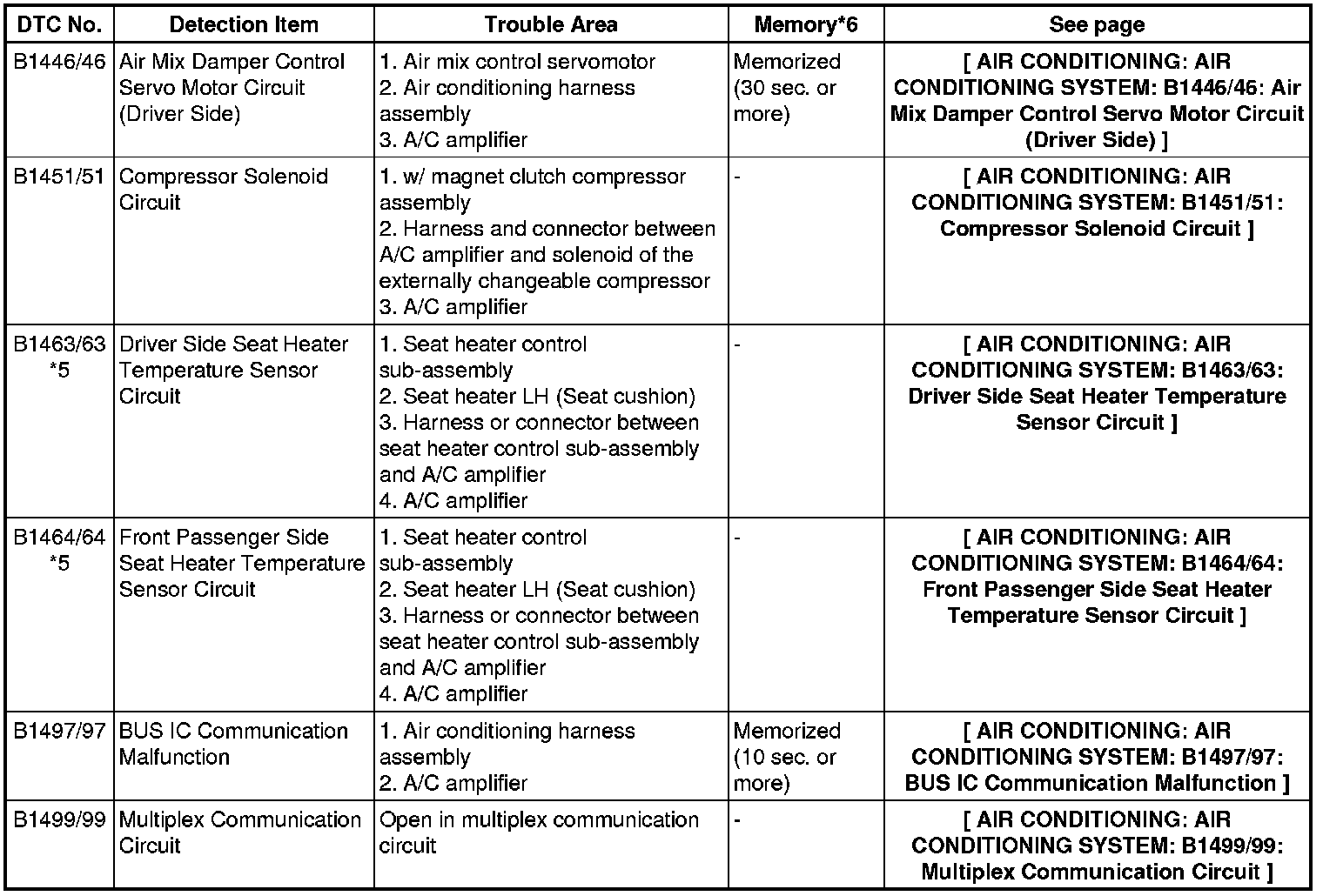 AIR CONDITIONING: AIR CONDITIONING SYSTEM: DIAGNOSTIC TROUBLE CODE CHART