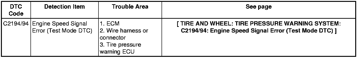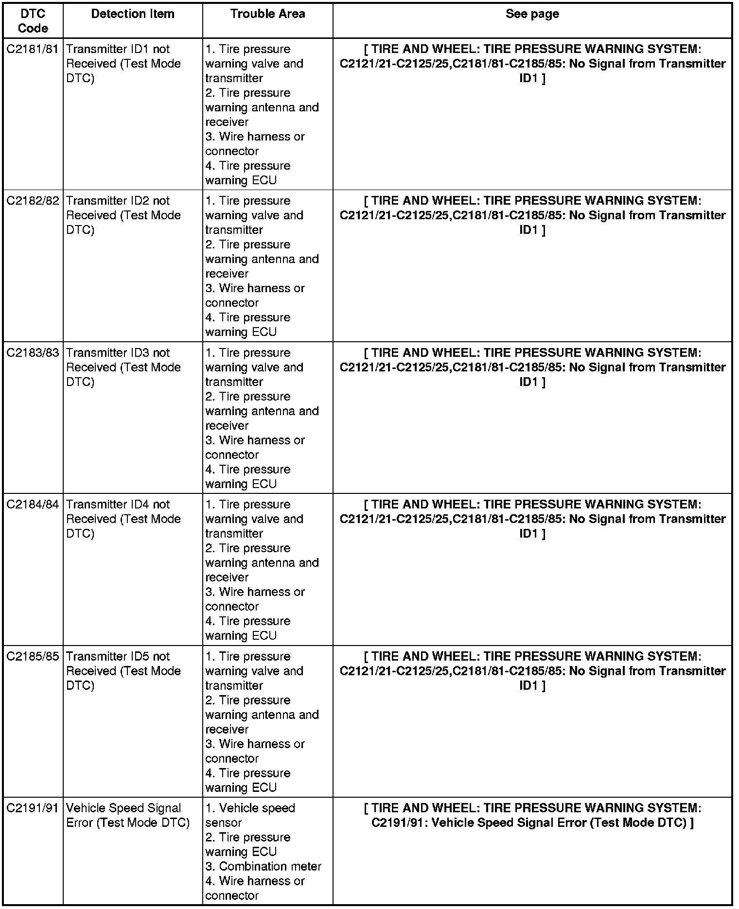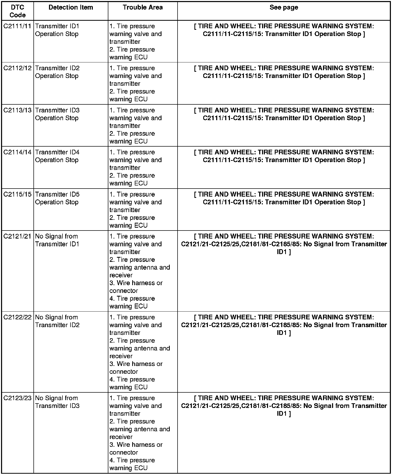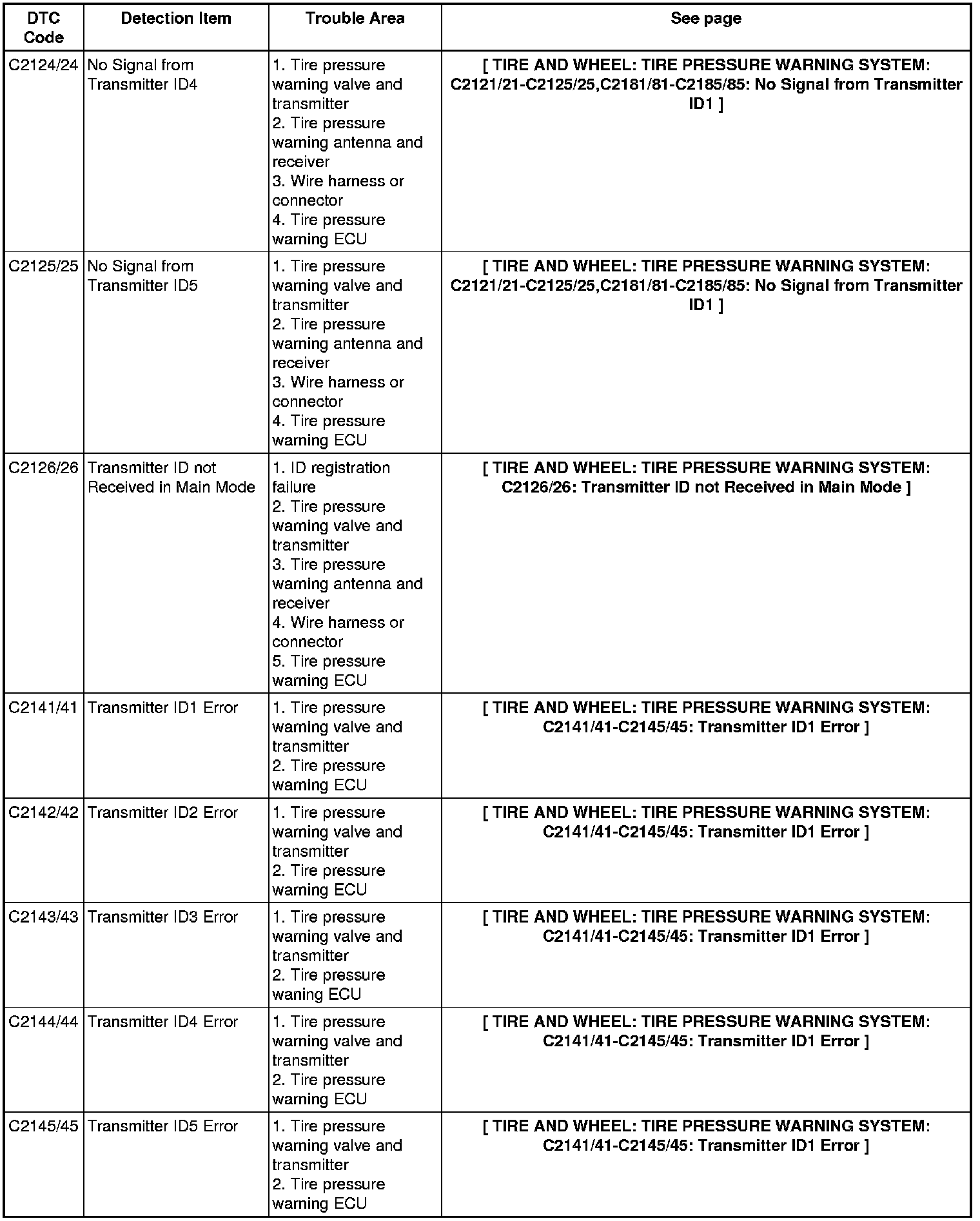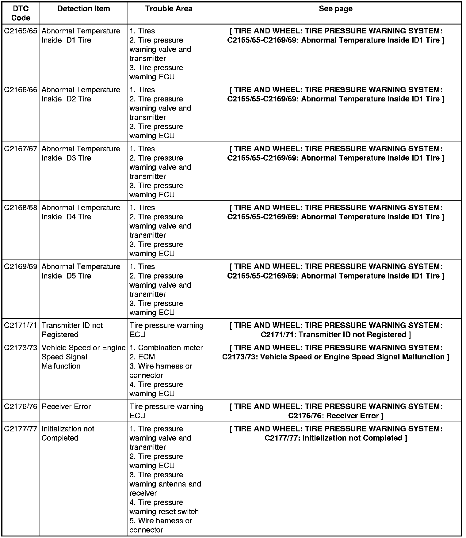 TIRE AND WHEEL: TIRE PRESSURE WARNING SYSTEM: DIAGNOSTIC TROUBLE CODE CHART
