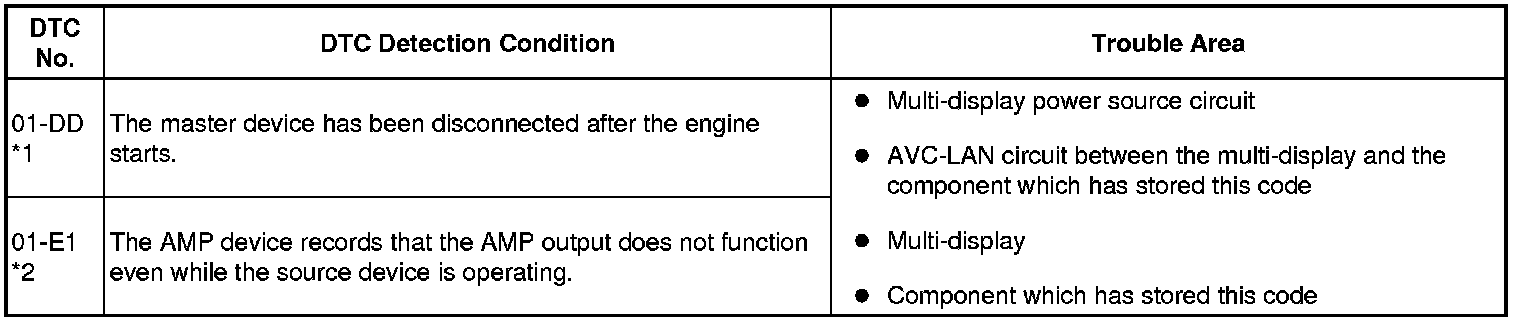(2) Check for an open or short in the AVC-LAN circuit between the multi-display and the component which has stored this code.