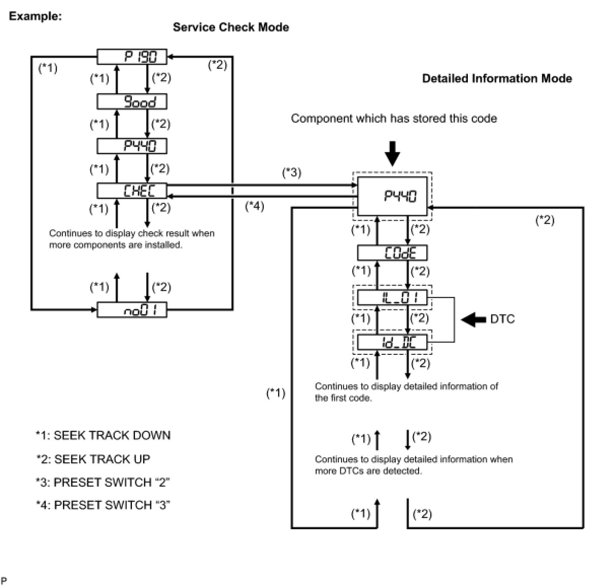 * For details of the DTC display, refer to "DTC CHECK/CLEAR" Reading and Clearing Diagnostic Trouble Codes.