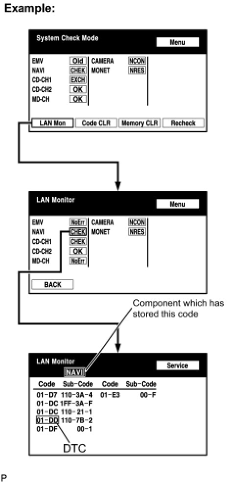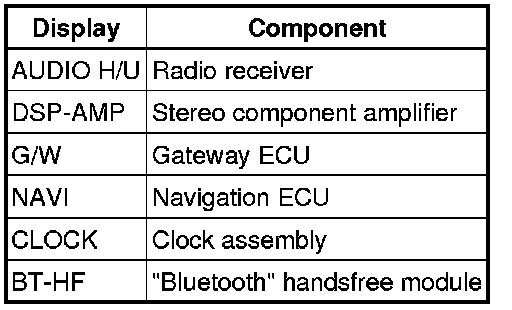 For example, "NAVI" is the component which has stored this code as shown in the illustration.
