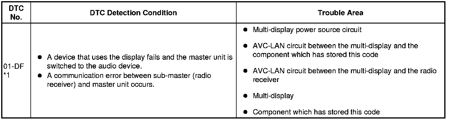 * *1: When 210 seconds have elapsed after disconnecting the power supply connector of the master component with the ignition switch on (ACC or IG), this code is stored.