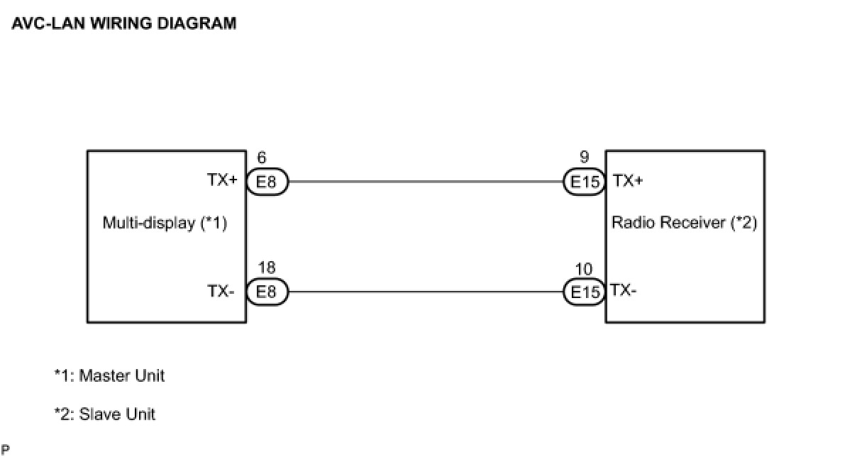 (a) Referring to the AVC-LAN wiring diagram below, check the AVC-LAN circuit between the multi-display and the radio receiver.