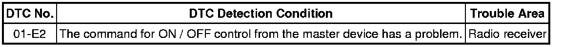 AUDIO / VISUAL: AUDIO AND VISUAL SYSTEM: 01-E2: ON / OFF Indication Parameter Error