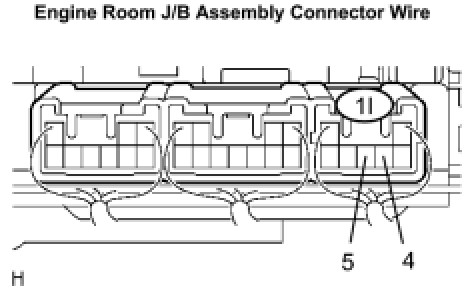 (b) Disconnect the connector from the engine room J/B assembly.