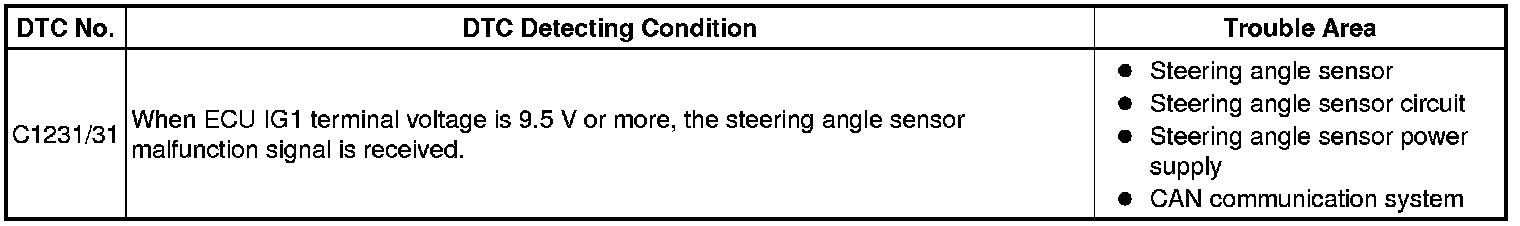 BRAKE CONTROL: VEHICLE STABILITY CONTROL SYSTEM: C1231/31: Steering Angle Sensor Circuit Malfunction