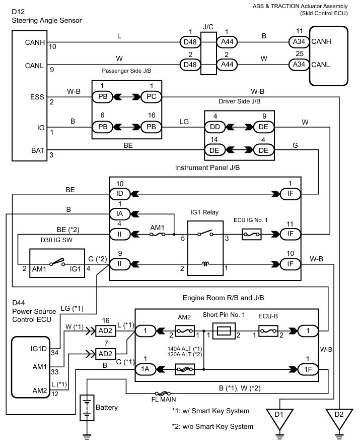 The steering angle sensor signal is sent to the skid control ECU via CAN communication system. When there is a malfunction in the CAN communication system, it will be detected by the diagnosis function.