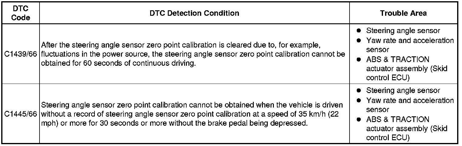 * If the same DTC C1439/66 and/or C1445/66 is not output again, the DTC may have been stored due to a temporary loss of the steering angle zero calibration, such as when the power voltage drops.