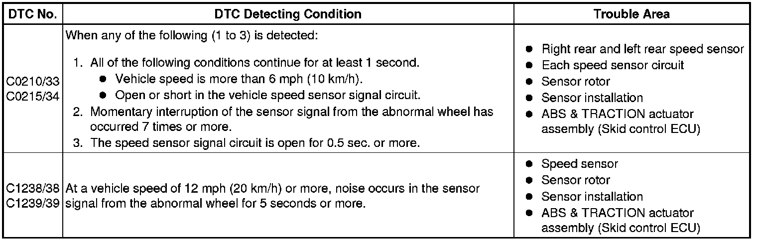 DTC C0210/33 and C1238/38 are for the right rear speed sensor.