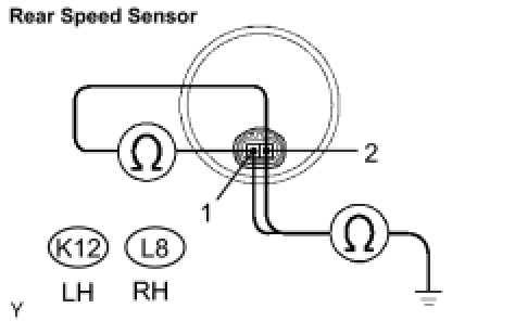 (2) Connect the oscilloscope to terminals 1 and 2 of the rear speed sensor.