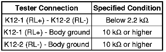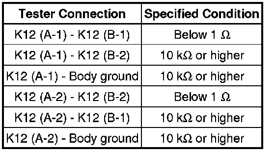 (3) Measure the resistance according to the value(s) in the table below.