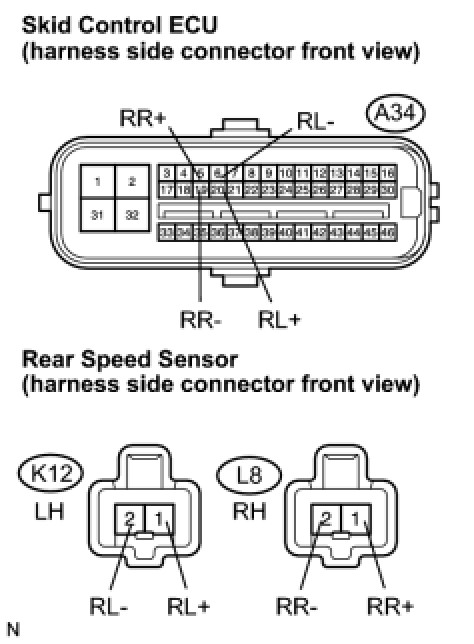 8. CHECK HARNESS AND CONNECTOR (REAR SPEED SENSOR TO SKID CONTROL ECU)