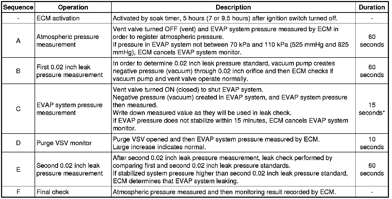 *: If only a small amount of fuel is in the fuel tank, it takes longer for the EVAP pressure to stabilize.