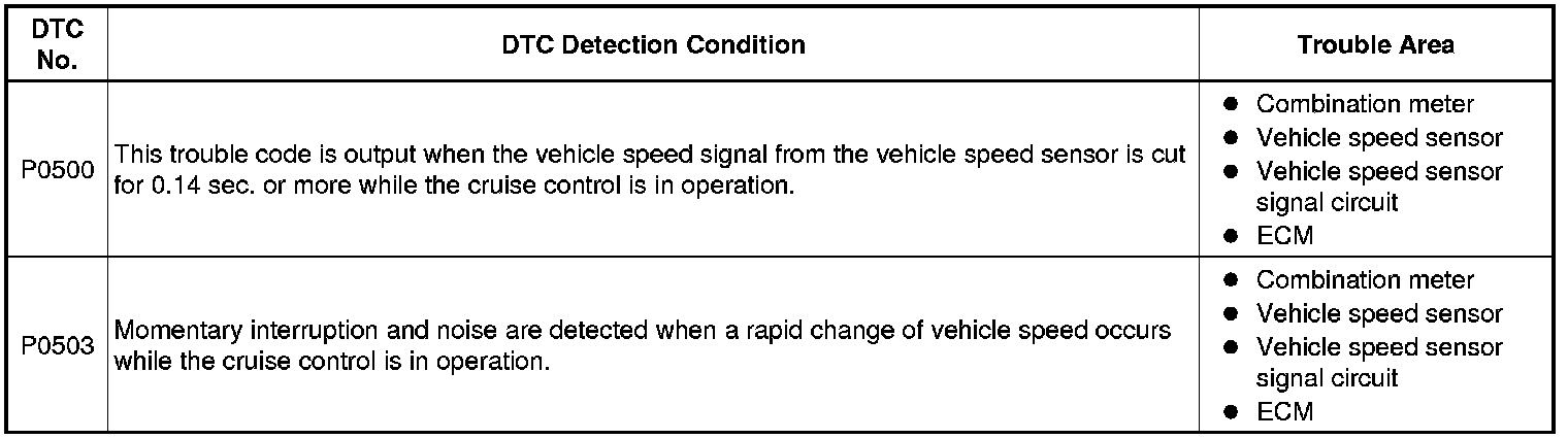 CRUISE CONTROL: DYNAMIC LASER CRUISE CONTROL SYSTEM: P0500,P0503: Vehicle Speed Sensor Malfunction