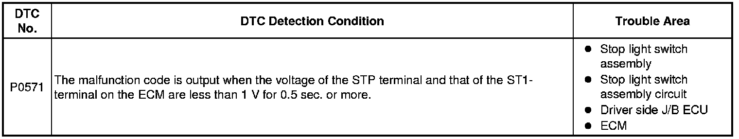 CRUISE CONTROL: CRUISE CONTROL SYSTEM: P0571: Brake Switch "A" Circuit