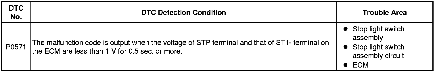 CRUISE CONTROL: DYNAMIC LASER CRUISE CONTROL SYSTEM: P0571: Brake Switch "A" Circuit