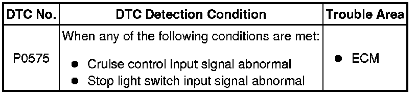 CRUISE CONTROL: DYNAMIC LASER CRUISE CONTROL SYSTEM: P0575: Cruise Control Input Circuit