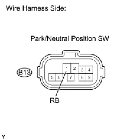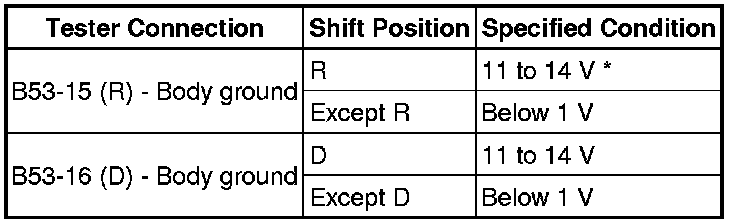(c) Turn the ignition switch to the ON position, and measure the voltage according to the value(s) in the table below when the shift lever is moved to each position.