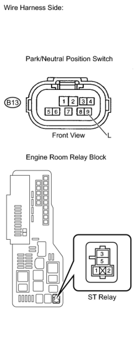 2. CHECK HARNESS AND CONNECTOR (PARK/NEUTRAL POSITION SWITCH - ST RELAY)