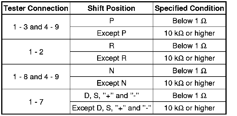 (a) Measure resistance according to the value(s) in the table below when the shift lever is moved to each position.
