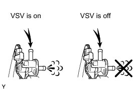 (g) When the purge VSV is operated using the Techstream, check whether the part of the purge VSV applies suction to your finger.