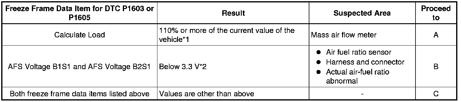 - *1: If the mass air flow meter is malfunctioning and incorrectly measures the intake air volume to be higher than the actual volume of air flowing through the intake manifold, the freeze frame data will show a high engine load value.