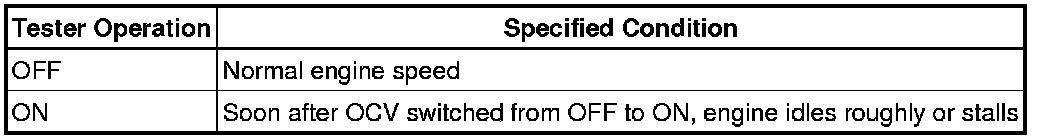 (f) Check the engine speed while operating the Oil Control Valve (OCV) using the Techstream.