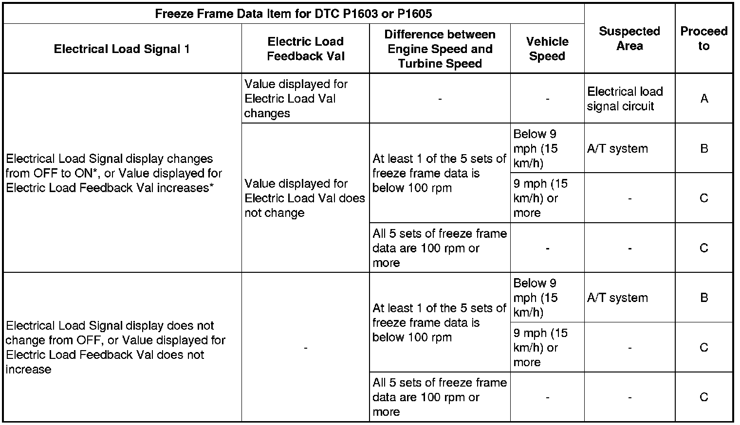 *: If the Electrical Load Signal display changes from OFF to ON or the "Electric Load Feedback Val" increases, it probably is a malfunction due to a change in electrical load. Check the generator and the continuity and connections between the generator and ECM.