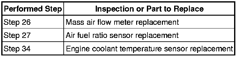Referring to the chart, inspect and repair or replace the part from the step where an inspection was performed.