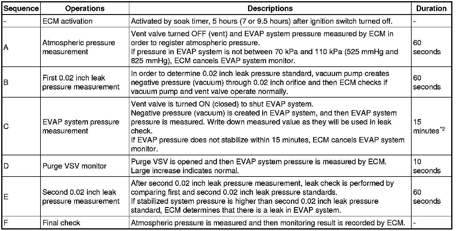*2: If only a small amount of fuel is in the fuel tank, it takes longer for the EVAP pressure to stabilize.