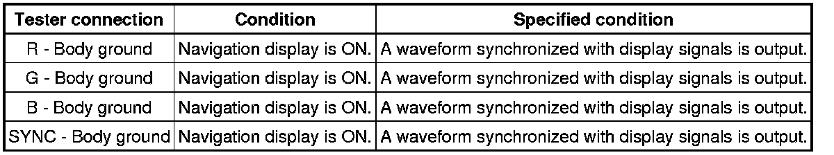 * The waveform pattern may differ from those shown in the illustrations below due to differences in oscilloscope settings. A normal navigation ECU operating condition can be determined if any waveform is output.