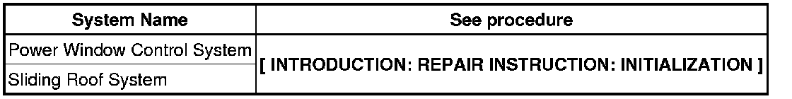 When disconnecting the negative (-) battery terminal, initialize the following systems after the terminal is reconnected.
