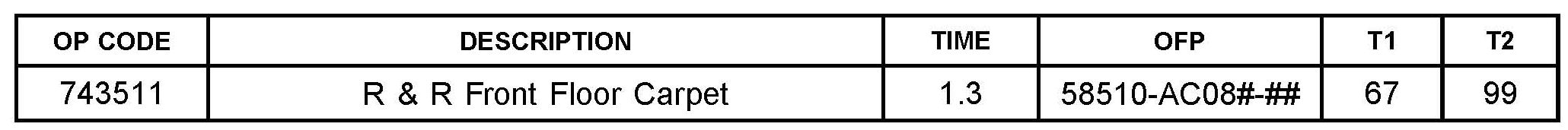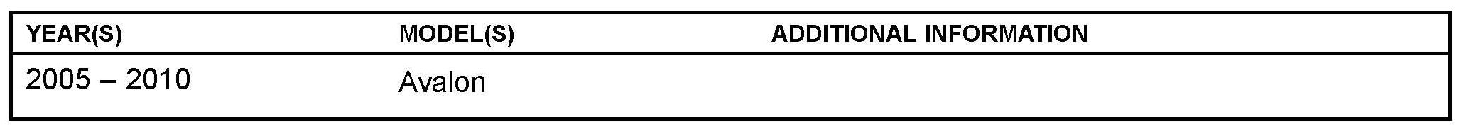 To enhance serviceability on 2005 - 2010 model year Avalon vehicles the floor carpet assembly