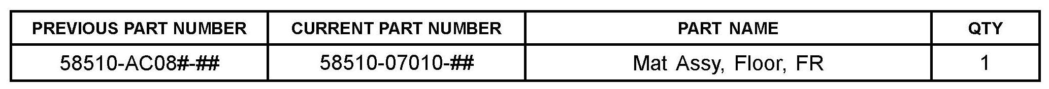 (FR Floor Mat Assy) has been modified to include both carpet and hook tape for installation.