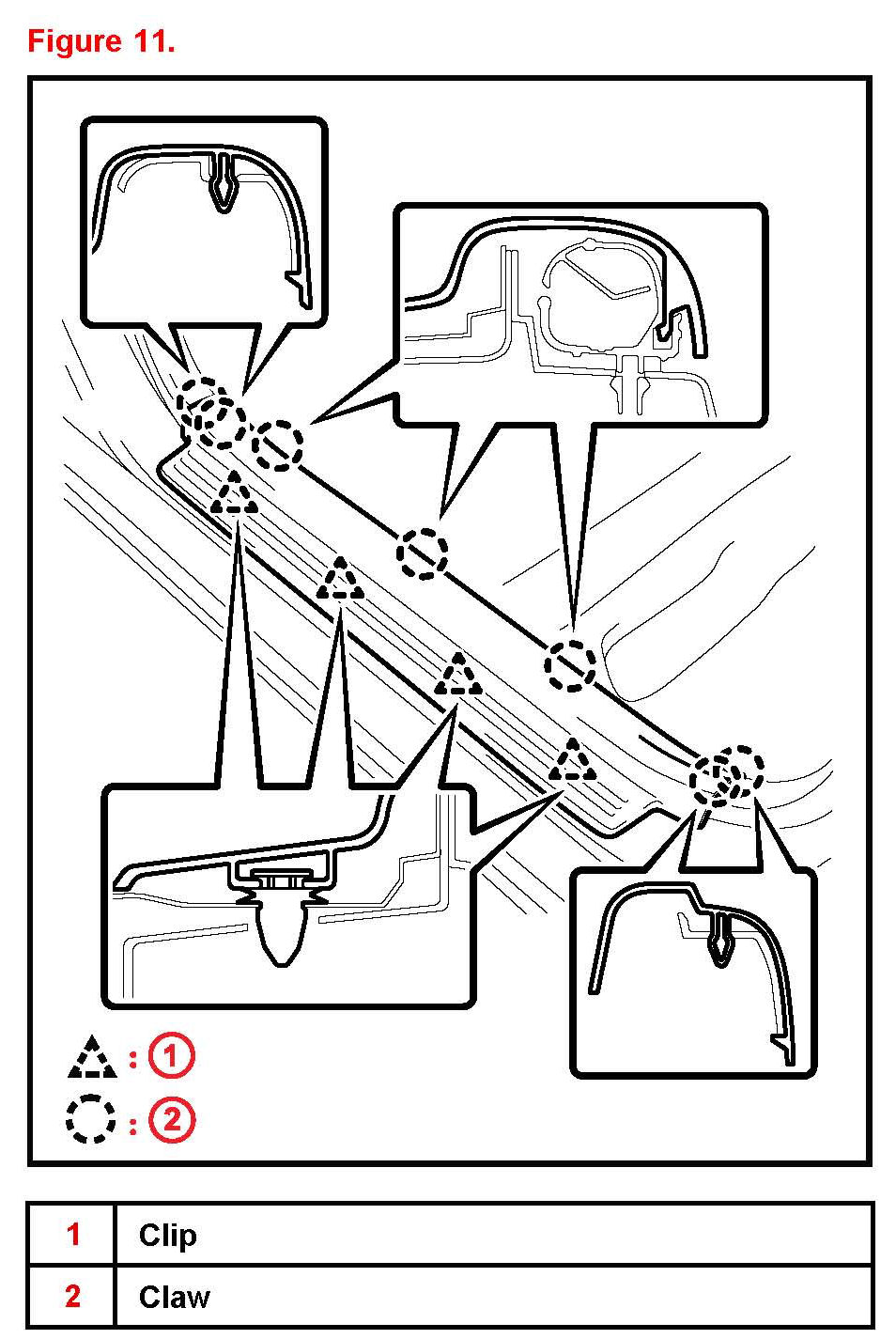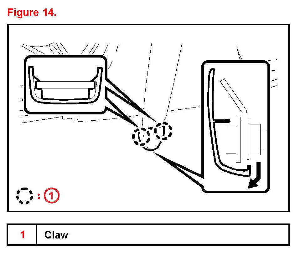 14. Disengage the 4 clips and 7 claws and remove the front door scuff plate RH.