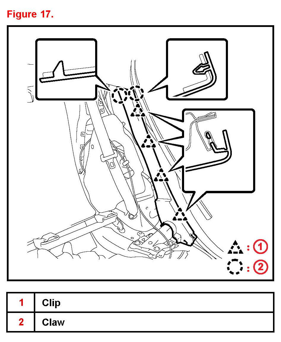 19. Remove the front door opening trim weatherstrip LH and RH.