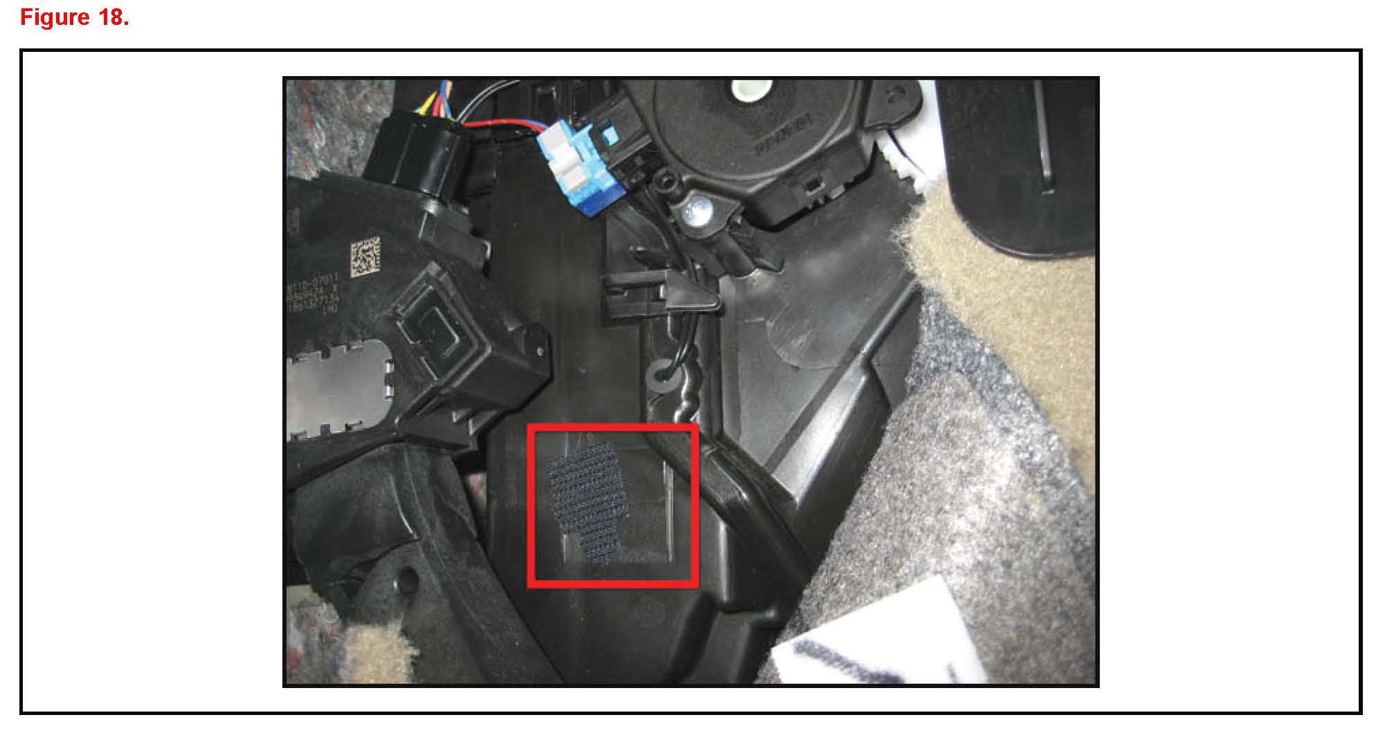 32. Remove the OLD hook tape from the LH side of the HVAC Unit Assembly.