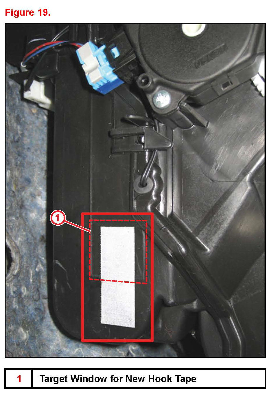 ^ When properly installed, the hook and loop fastener should be aligned as shown in Figure 20.
