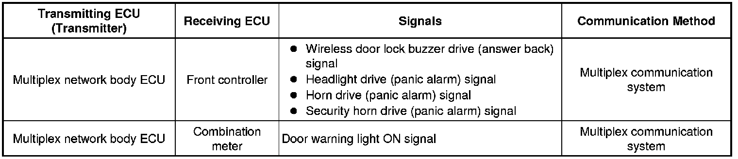 (a) The table below shows the 4 ID registration function modes by which up to 4 different codes can be registered. The codes are electronically registered (written and stored) in the EEPROM that is contained in the multiplex network body ECU.